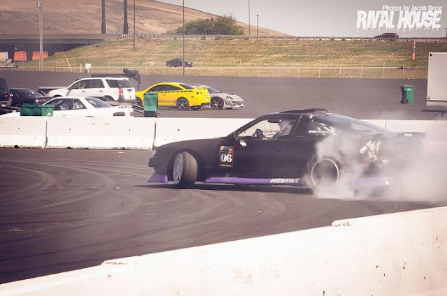 Once the drivers settled in and established a line on the new, ice-like surface sealant, we rolled out the tandem groups which evolved into 3 and 4 car trains, spewing yellow smoke and flinging bits of tire and body panel all over the freshly washed hard parkers.